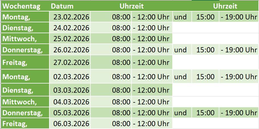 Bitte melden Sie sich persönlich im Sekretariat der BOS Bad Wörishofen an. Die Anmeldezeiten sind der Tabelle zu entnehmen.